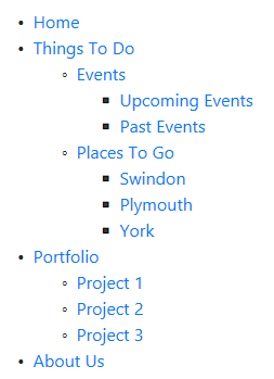 One of the menu samples is for a multi-level menu where you can add an unlimited number of nested menu levels. Here's what the rendered output of the sample data looks like: